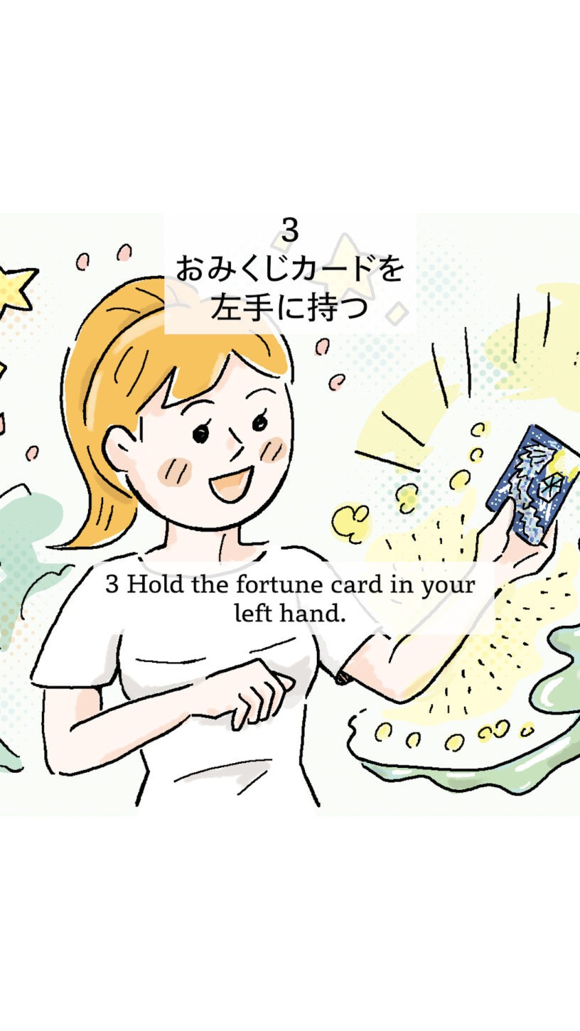 3 Hold the omikuji card in your left hand.