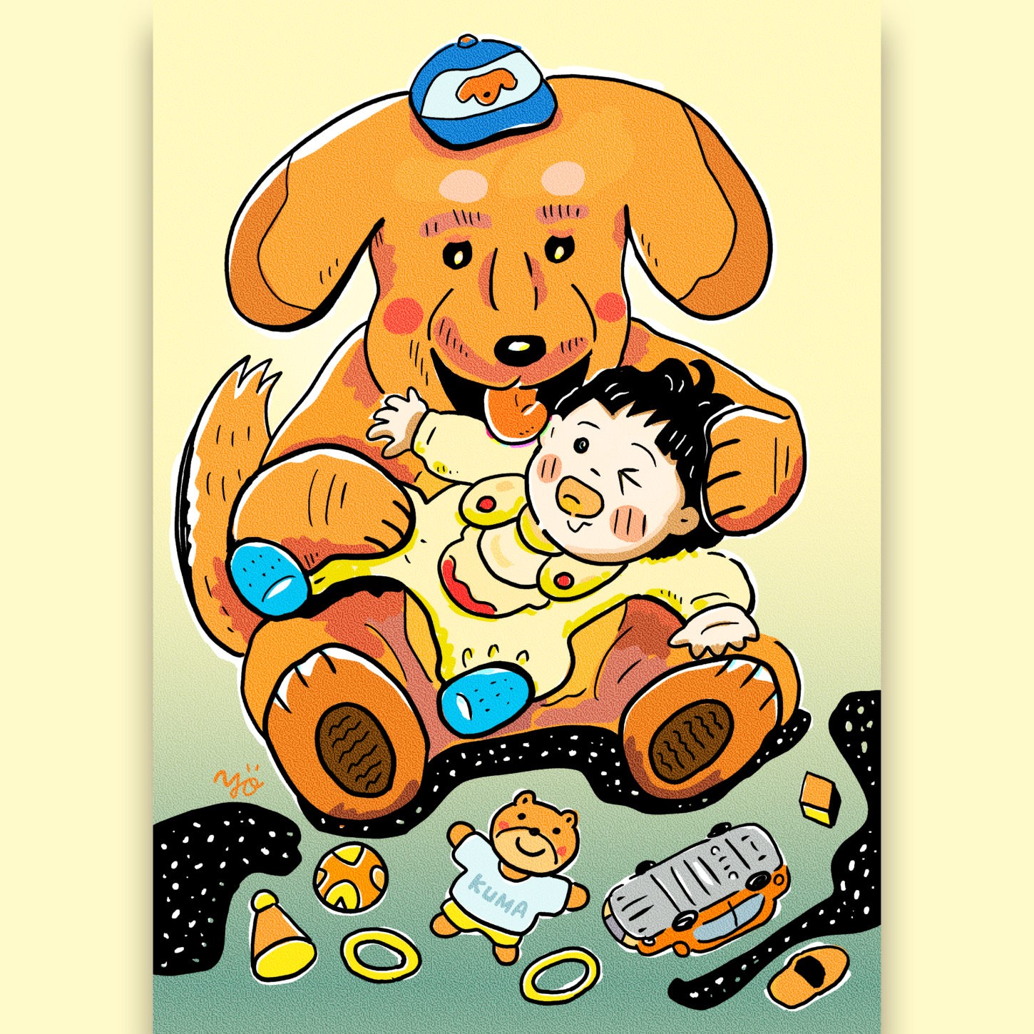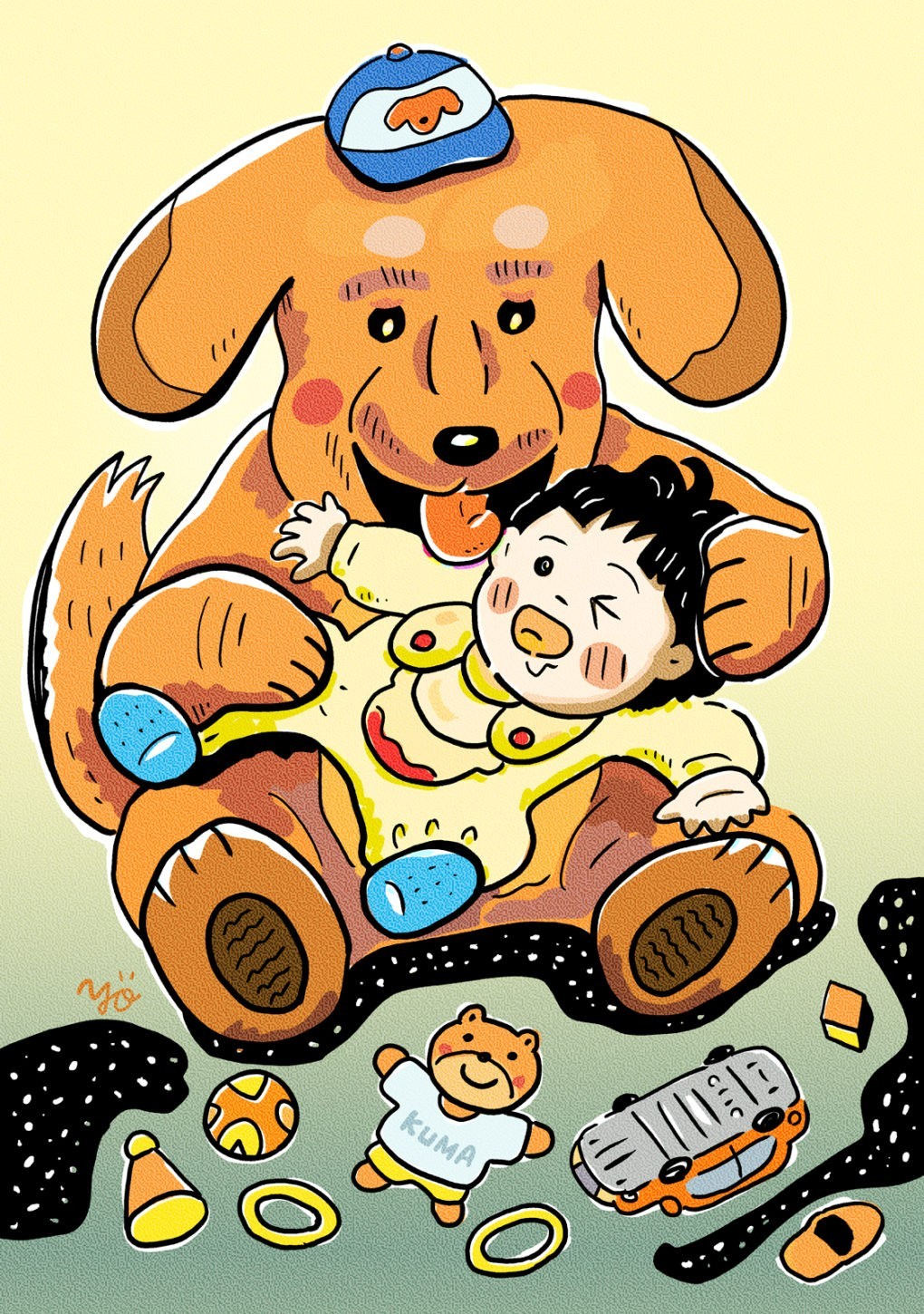 Dad was so excited that he bought all kinds of toys,